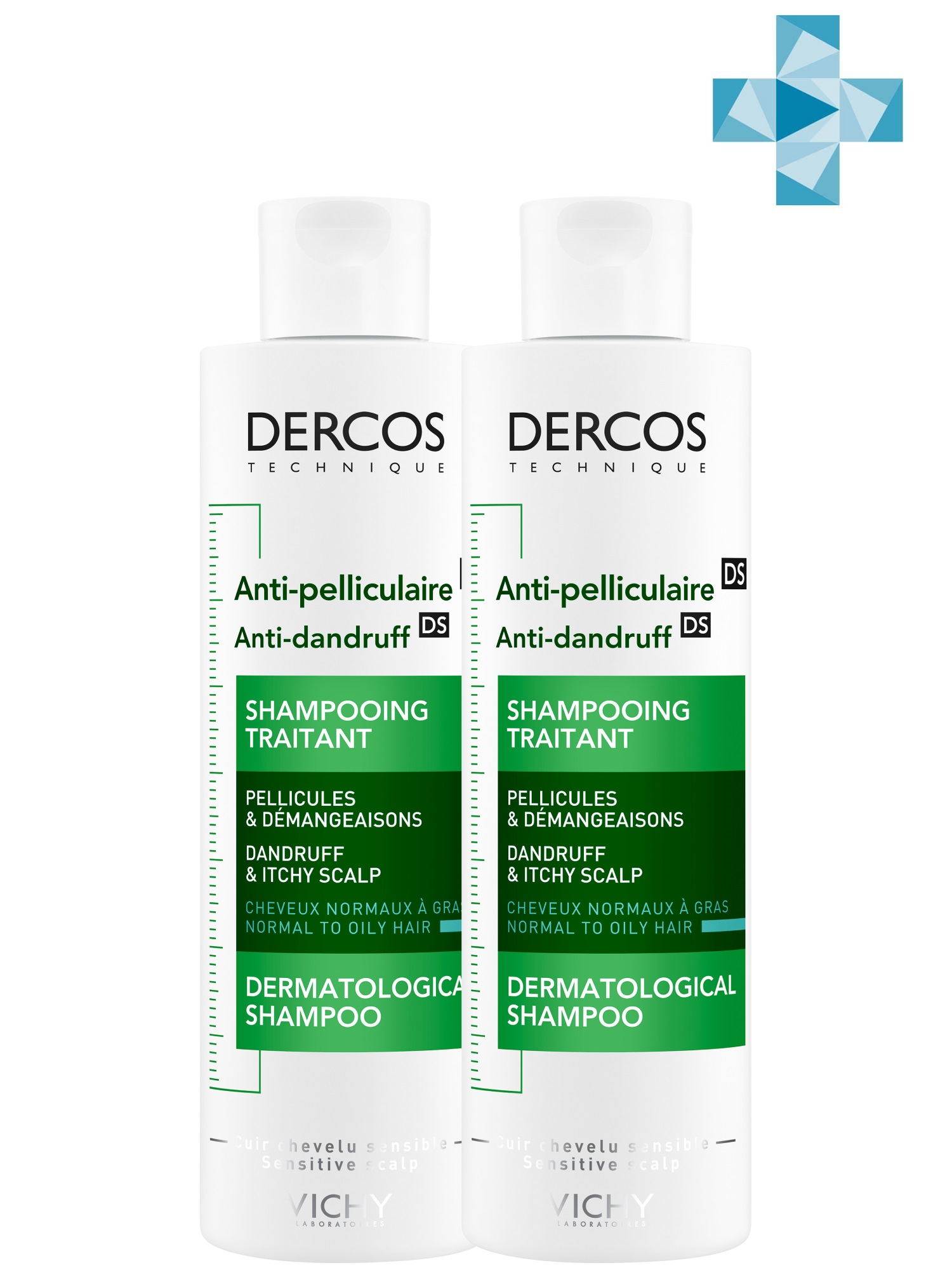 Интенсивный шампунь-уход против перхоти для жирной кожи головы Dercos, 200 мл х 2 шт