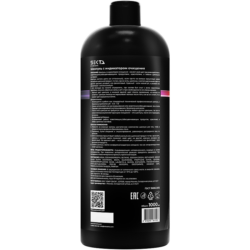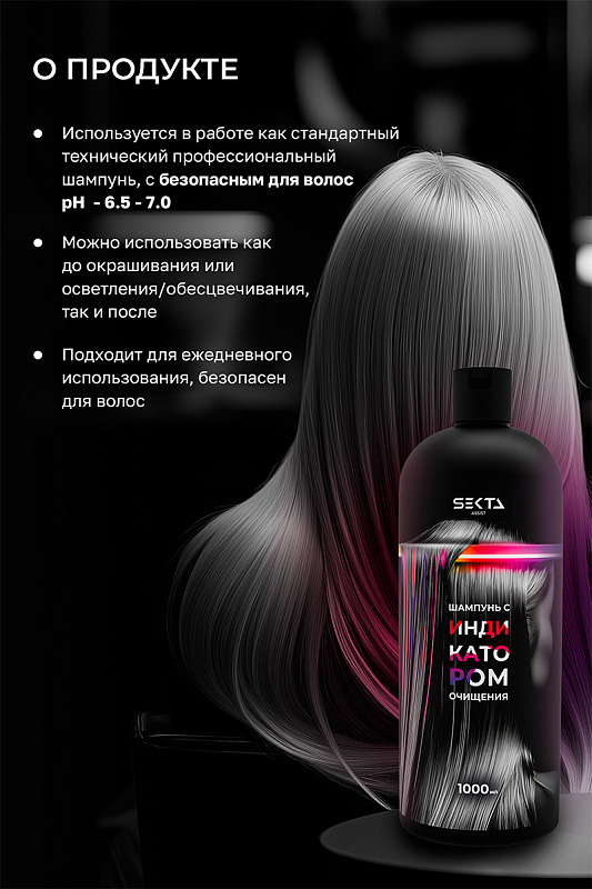 Шампунь с индикатором очищения меняет цвет при контакте с осветляющими, обесцвечивающими средствами, красителями и другими щелочными составами. Шампунь имеет оранжевый оттенок и не содержит тонирующих пигментов. Если на волосах есть остатки кислых или щелочных средств, шампунь меняет цвет на красный, розовый или фиолетовый. Красный оттенок появляется при низком pH, розовый или фиолетовый — при высоком.