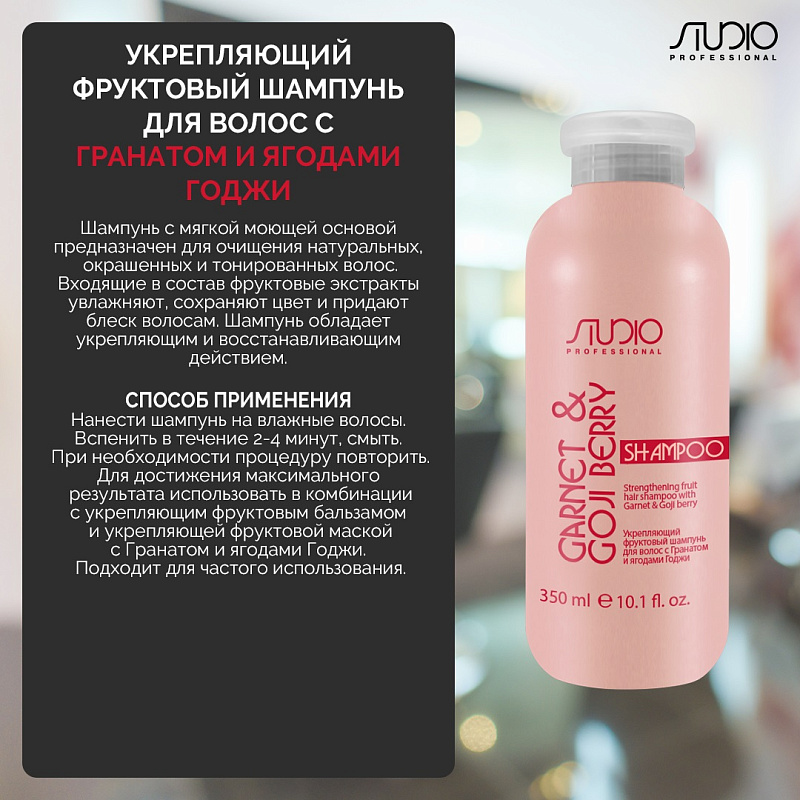 Укрепляющий фруктовый шампунь с гранатом и ягодами годжи, 350 мл