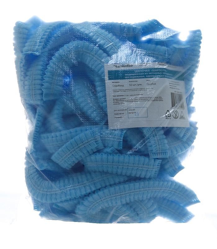 Шапочка «Шарлотка» медицинская из нетканых материалов, нестерильная, одноразовая на резинке Голубая, 1 х 50 шт