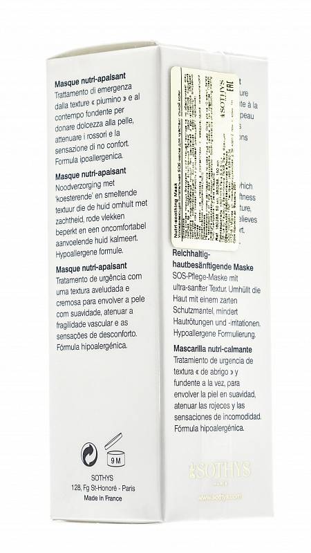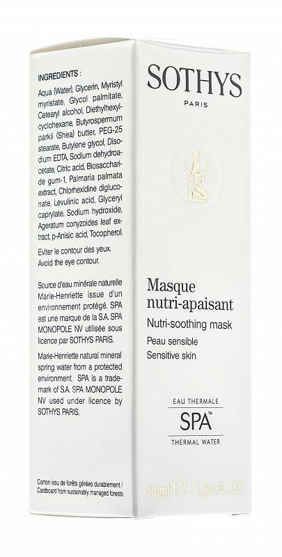 • Поверх нанесите средство регулярного ухода Sothys (идеально – Soothing velvet cream или Soothing melting fluid). Повторяйте 1-2 раза в неделю или по мере необходимости.