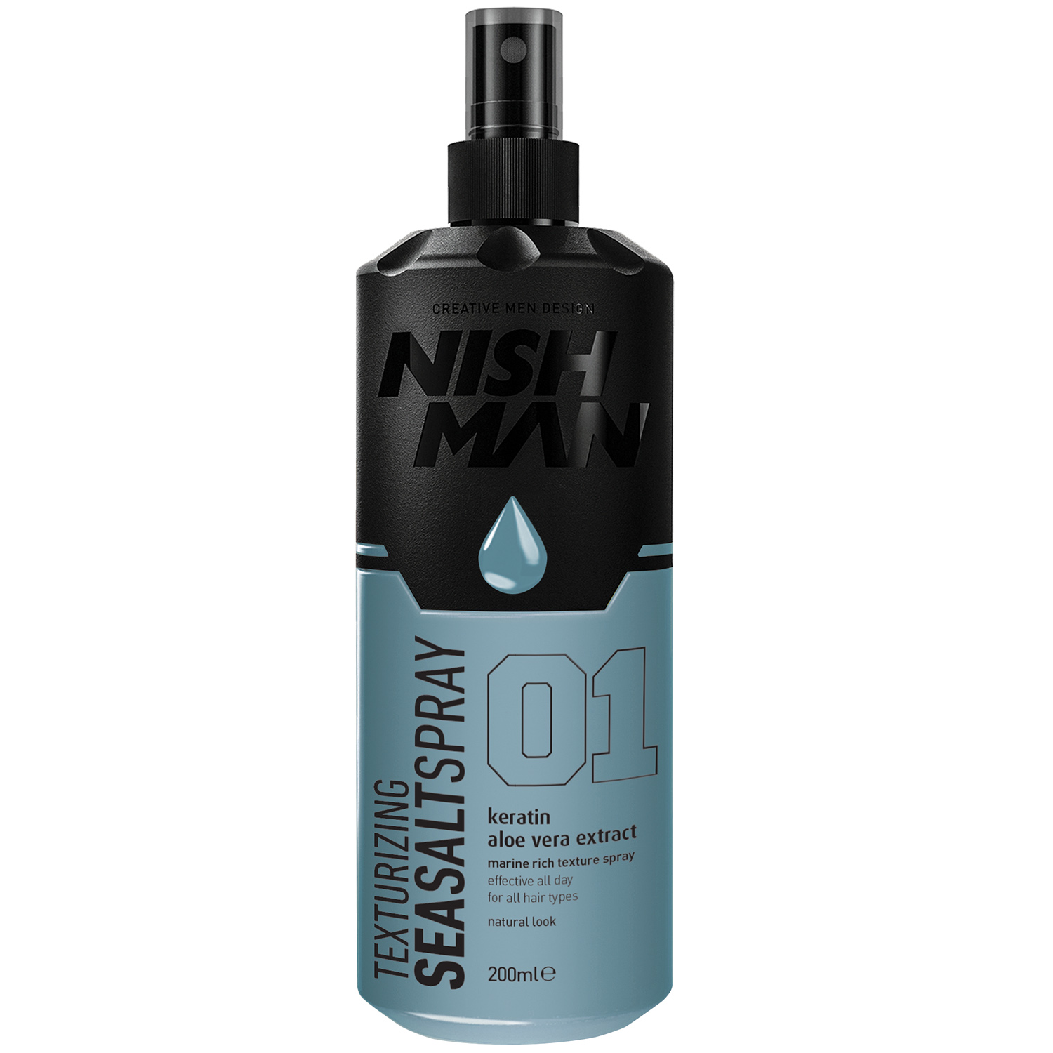 Nishman Texturizing Sea Salt Spray — это текстурирующий спрей для стилизации волос на основе морской соли и кератина. Спрей обеспечивает легкую фиксацию укладки в течение дня, придает прическе дополнительный объем, а также подчеркивает текстуру волос.