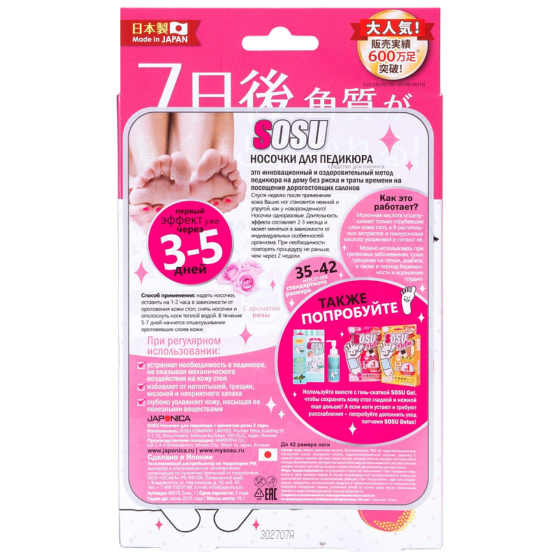 Носочки для педикюра с ароматом розы, 2 пары