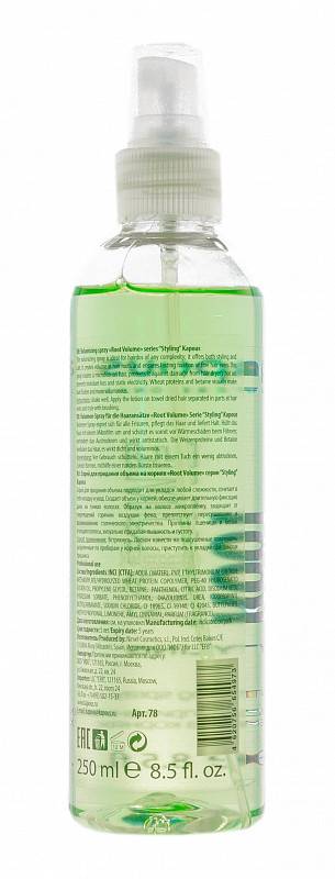 Укладочное средство для моделирования причесок любой степени сложности и объема. Легко распределяется по волосам и быстро сохнет. Может использоваться на сухих и на влажных волосах. Средство сочетающее в себе укладку и уход за волосами создает объем непосредственно у корней волос, обеспечивает влагостойкую, длительную фиксацию. Образуя на поверхности волоса микропленку, он препятствует потери влаги и защищает волос от неблагоприятных воздействий окружающей среды. Спрей укрепляет волосы и обеспечивает стойкость укладки. Защищает волосы от повреждений при использовании фена или щипцов, сохраняет естественный блеск. Предотвращает наэлектризованность волос. Средство не содержит спирта и не сушит кожу головы, идеально подходит для стайлинга, для тонких, редких и безжизненных волос.
