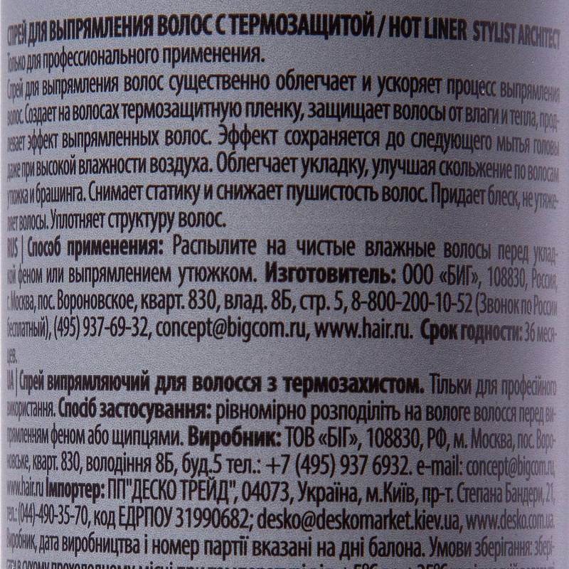 Спрей термозащитный для выпрямления волос Stylist architect HOT Liner 200 мл