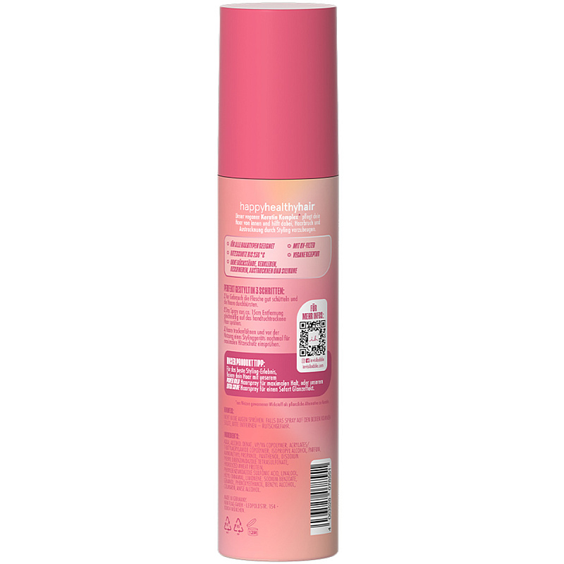 спиралевидный комплекс Vegan Keratin Repair с фитокератином и провитамином B5 проникает в структуру волоса, питая и защищая его, предотвращая ломкость и потерю влаги при укладке.
