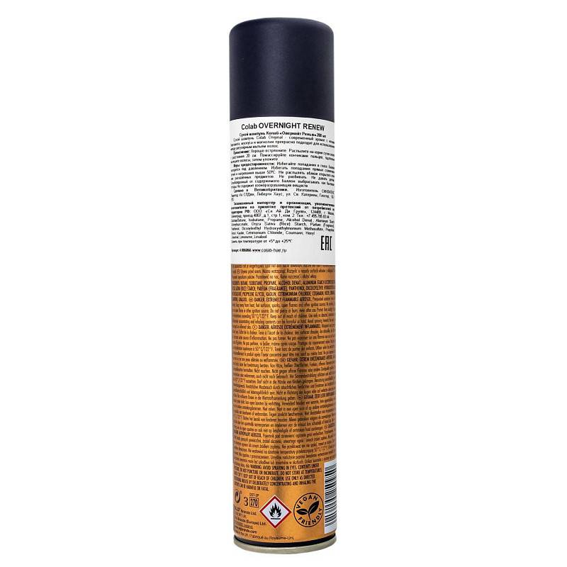 Хорошо встряхните баллон, разделите сухие волосы и распылите спрей на корни