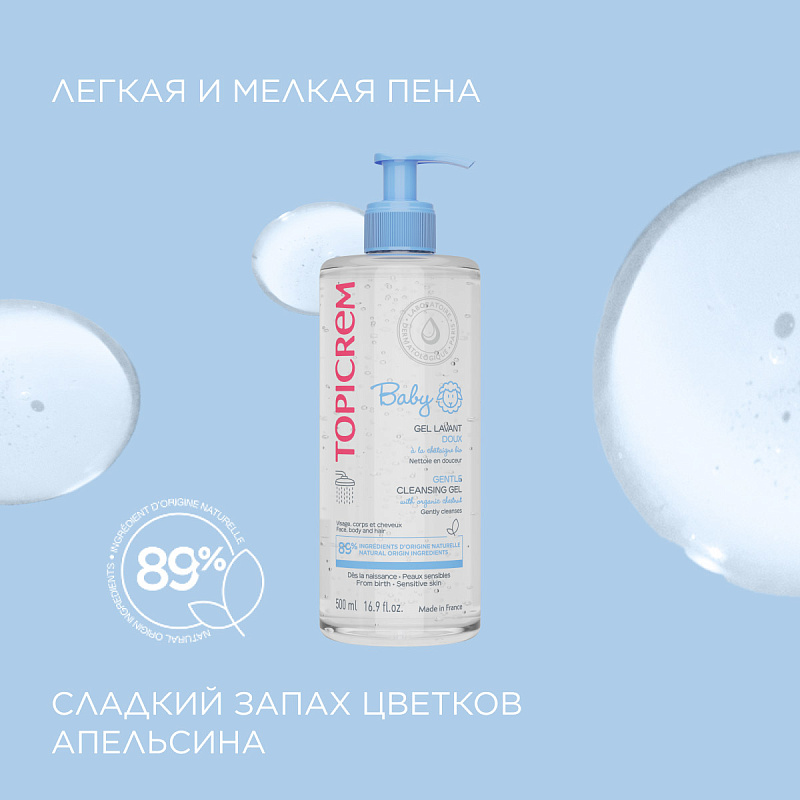Подходит для ежедневного применения, чувствительной кожи младенцев и малышей, не раздражает глаза.