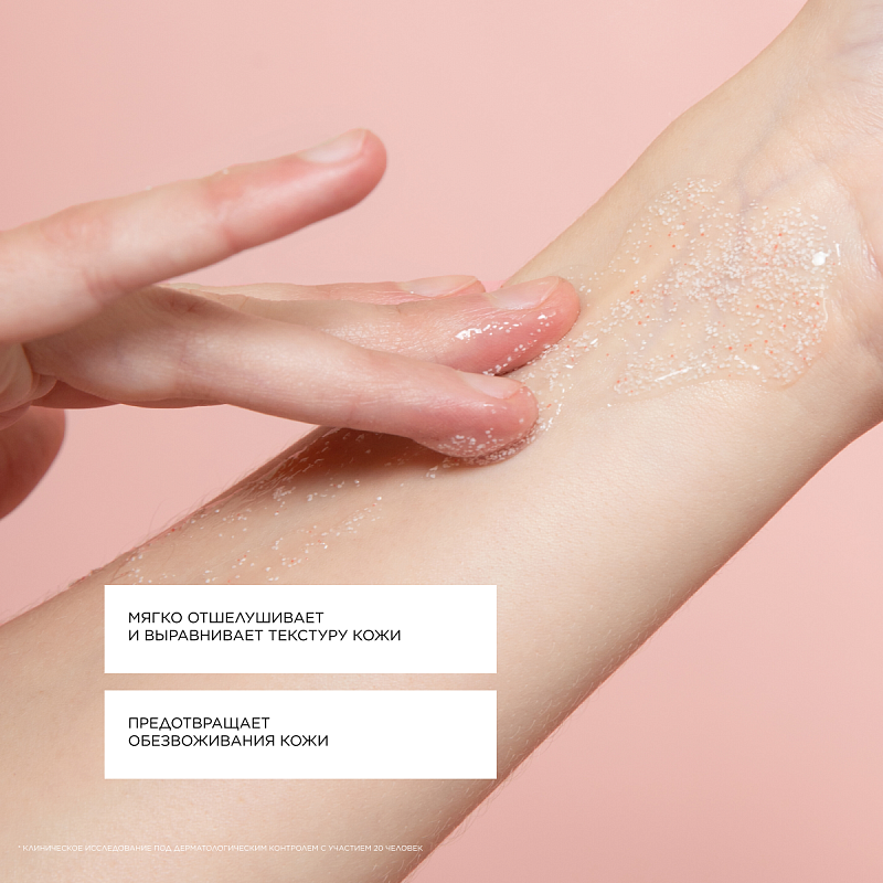 Мягко очищает, отшелушивает и улучшает текстуру кожи