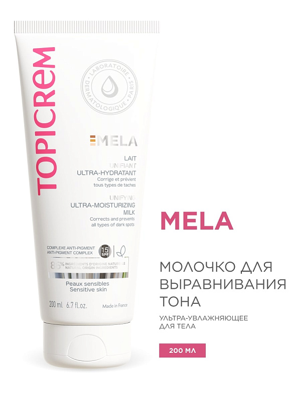 Ультра-увлажняющее молочко для выравнивания тона кожи Mela SPF15, 200 мл
