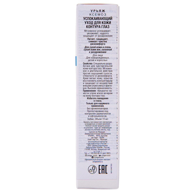 Ксемоз Успокаивающий уход для контура глаз оказывает мгновенное и длительное действие против ощущений сухости, стянутости и дискомфорта. Крем питает кожу, помогая восстановить кожный барьер и защищает от воздействия внешних агрессивных факторов. Высокая переносимость.