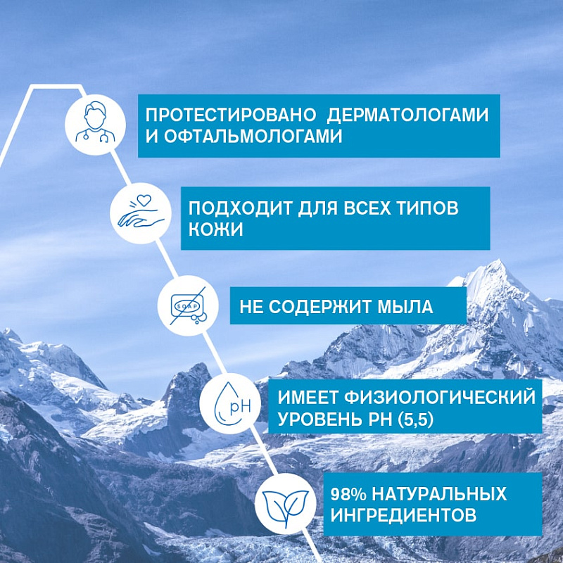 бережно очищает кожу и удаляет макияж