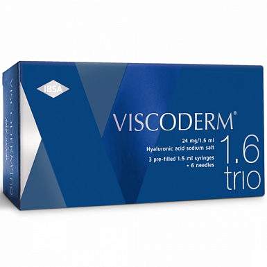 Viscoderm TRIO 1,6% – инъецируемый гель - имплантант для биоревитализации тканей кожи, содержащий нативную гиалуроновую кислоту молекулярной массы, идентичной эндогенной.