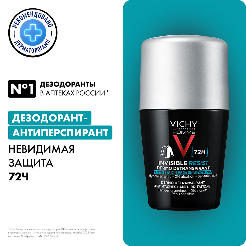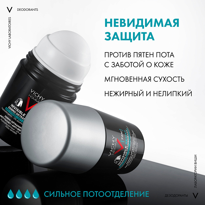 Мужской шариковый дезодорант-антиперспирант Invisible, защита от пота 72 часа, 50 мл