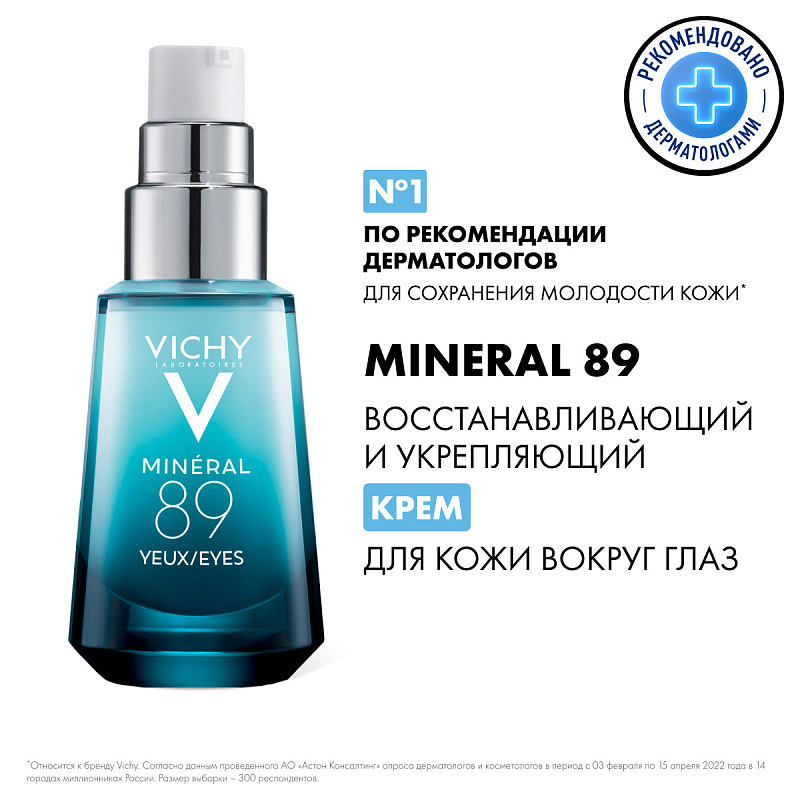 Восстанавливающий и укрепляющий уход для кожи вокруг глаз Mineral 89 содерджит рекордную концентрацию термальной воды Vichy [89%]. Защищает, укрепляет, увлажняет. Заметно разглаживает линии обезвоженности. Уменьшает темные круг под глазами.