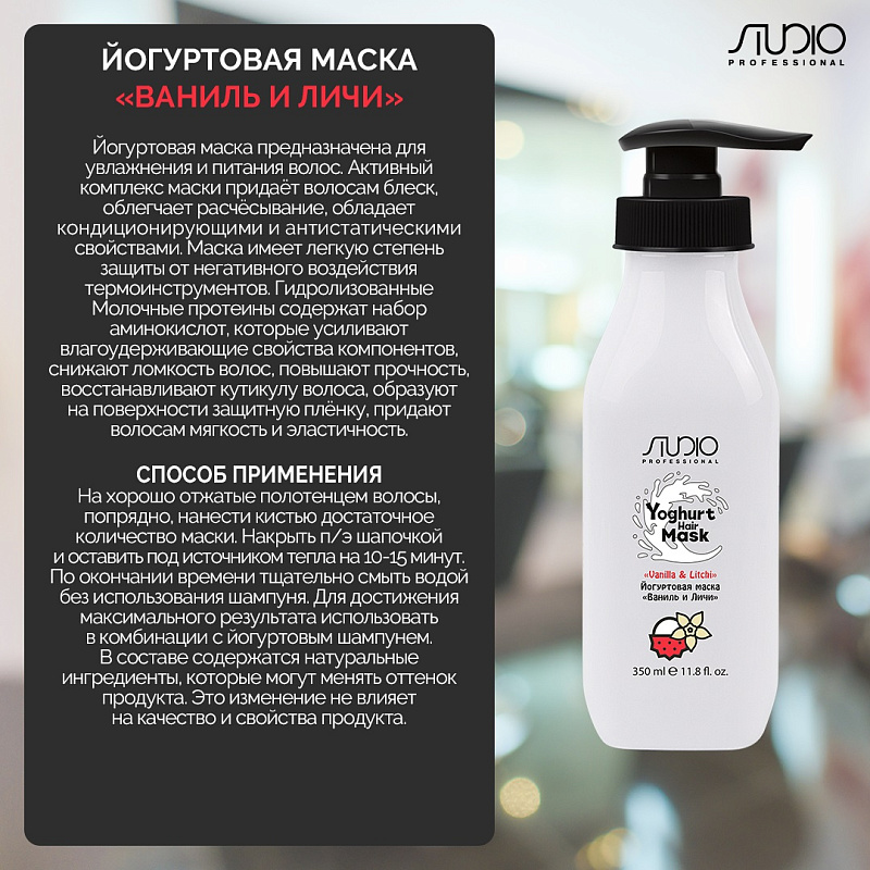 Йогуртовая маска для волос «Ваниль и личи», 350 мл