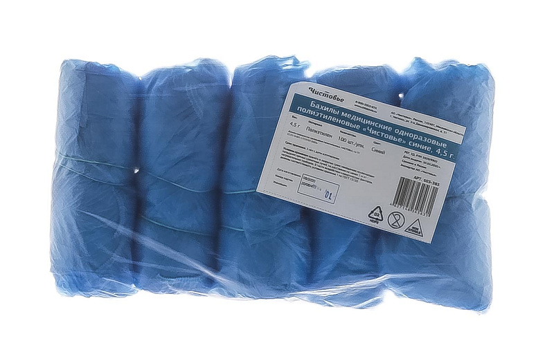 Бахилы медицинские одноразовые полиэтиленовые синие, 100 х 4,5 г