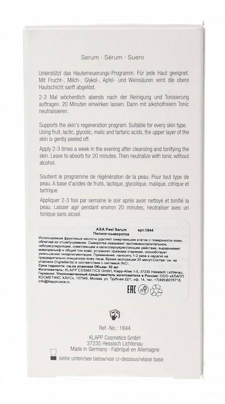 наносить 2-3 раза в неделю вечером на предварительно очищенную кожу. Через 20 минут протереть кожу тоником, завершить уход кремом KLAPP по типу кожи.
