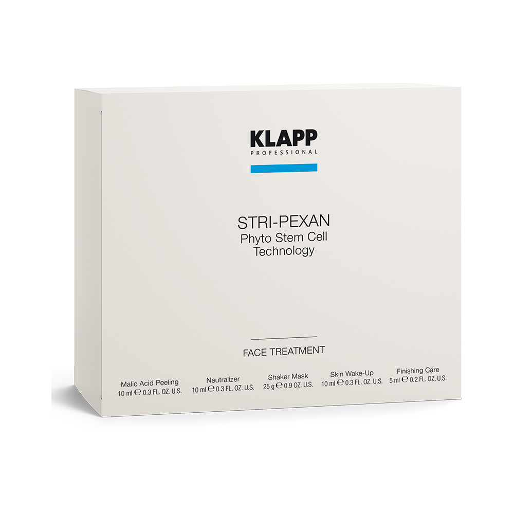Новая профессиональная процедура обеспечивает видимое омоложение кожи за счёт активного вещества из стволовых клеток яблока, выработанное из специального яблочного экстракта, который входит в состав всех продуктов серии Stri-Pexan phyto stem cell technology. Он способствует защите днк и противодействует преждевременному старению кожи.