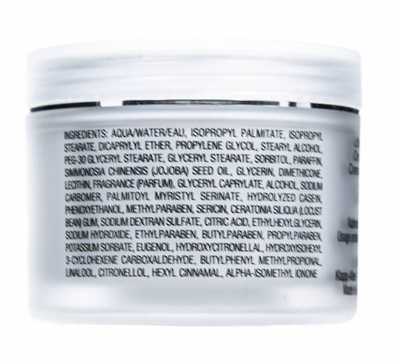 серицин, церамиды, масло жожоба, полисахариды коры рожкового дерева (Ceratonia siliqua), липосомы