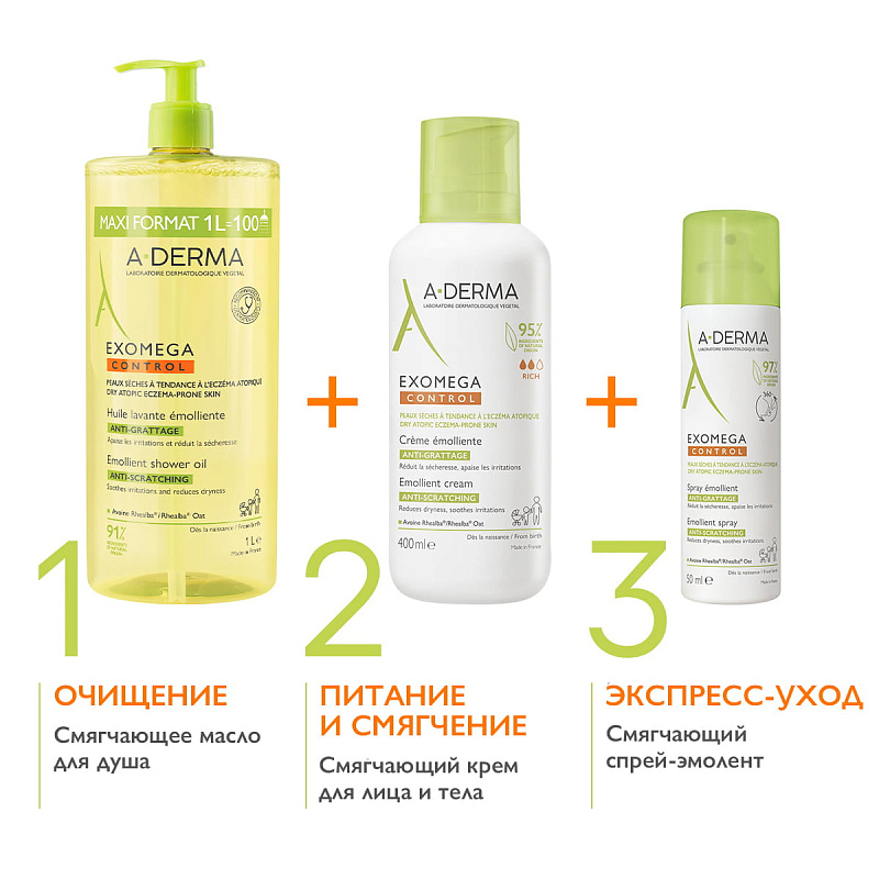Смягчающее масло для душа Exomega Control, 1000 мл