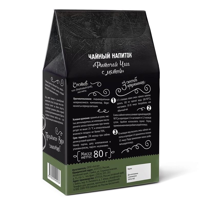 Фиточай "Чага с мятой", 80 гр