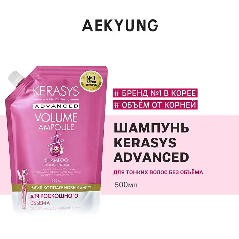 Ампульный шампунь Advanced Объем с коллагеном, 500 мл (запасной блок)