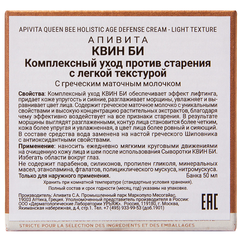 Состав: aqua/water/eau**, aqua/water/eau, glycerin, glyceryl stearate, dodecane, butyrospermum parkii (shea) butter*, propanediol, butylene glycol, coco-caprylate/caprate, candelilla/jojoba/rice bran polyglyceryl-3 esters, magnesium aluminum silicate, olus oil/vegetable oil/huile végétale, silica, mel extract/honey extract/extrait de miel*, royal jelly, cera alba/beeswax/cire d'abeille*, propolis extract, rosa canina fruit* extract, zizyphus jujuba seed extract, cistus incanus flower/leaf/stem extract, commiphora myrrha oil, oleaeuropaea (olive) fruit oil*, rosa damascena flower oil*, boswellia carterii oil*, triticum vulgare (wheat) germ oil, panthenol, sodium hyaluronate, tocopherol, tocopheryl acetate, sigesbeckia orientalis extract, rabdosiarubescens extract, gynostemma pentaphyllum leaf/stem extract, helianthus annuus (sunflower) seed oil*, glyceryl linoleate, glyceryl linolenate, sorbitan palmitate, cetyl palmitate, bisabolol, lecithin, glycine, alanine, serine, valine, threonine, isoleucine, proline, phenylalanine, histidine, hydroxypropyl cyclodextrin, arginine, allantoin, disodium edta, ethylhexylglycerin, glutamine, ascorbyl tetraisopalmitate, peg-100 stearate, citric acid, aspartic acid, sorbitan olivate, pullulan, xanthan gum, decyl glucoside, pca, phytoecdysteroids, sodium pca, sodium lactate, sodium stearoyl lactylate, citronellyl methylcrotonate, caprylyl glycol, cetearyl alcohol, phenethyl alcohol, phenoxyethanol, parfum/fragrance, benzyl salicylate, linalool, limonene, citronellol, geraniol, alpha-isomethyl ionone, hydroxycitronellal.