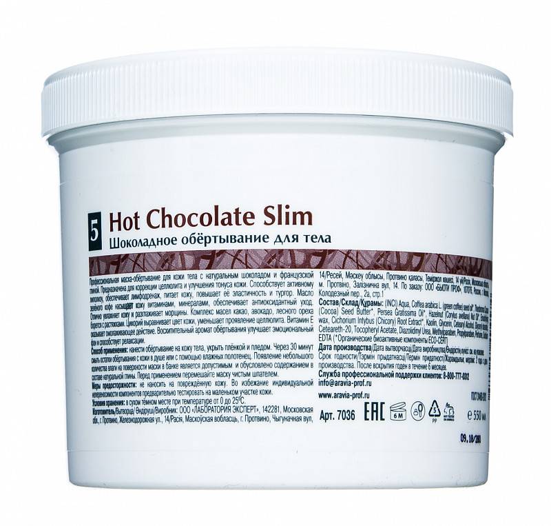 Для кожи тела с натуральным шоколадом и французской глиной. Предназначено для коррекции целлюлита и улучшения тонуса кожи. Способствует активному липолизу, обеспечивает лимфодренаж, питает кожу, повышает её эластичность и тургор. Масло зелёного кофе насыщает кожу витаминами, минералами, обеспечивает антиоксидантный уход. Отлично увлажняет кожу и разглаживает морщины. Комплекс масел какао, авокадо, лесного ореха борется с растяжками. Цикорий выравнивает цвет кожи, уменьшает проявление целлюлита. Витамин Е оказывает омолаживающее действие. Восхитительный аромат обёртывания улучшает эмоциональный фон и способствует релаксации.