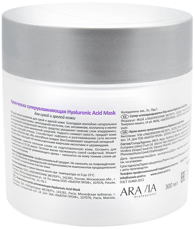 Крем-маска суперувлажняющая Hyaluronic Acid Mask, 300 мл
