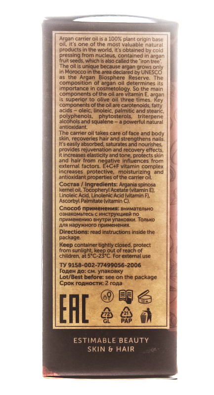 Косметическое натуральное масло 100% Аргана (Железное дерево), 30 мл