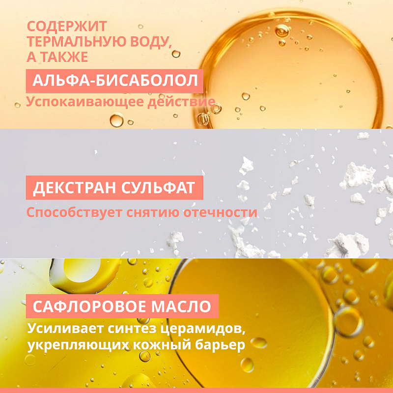 Успокаивает раздражения, покраснения и стянутость кожи