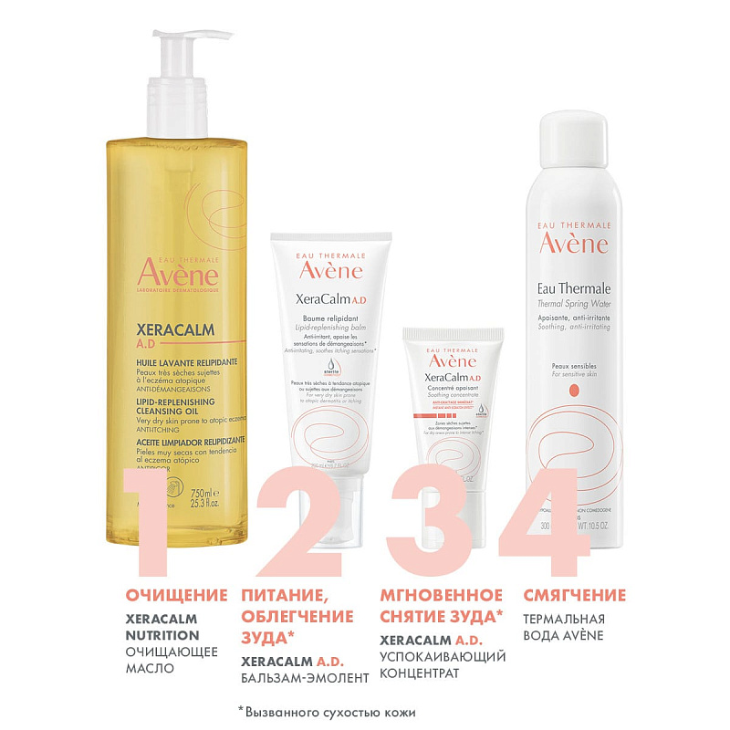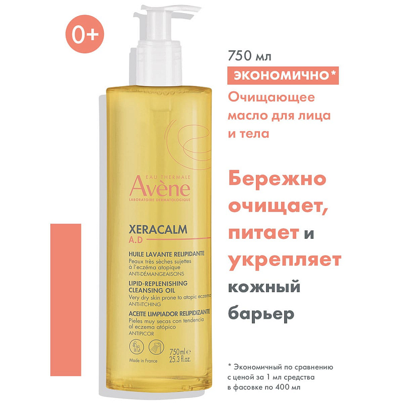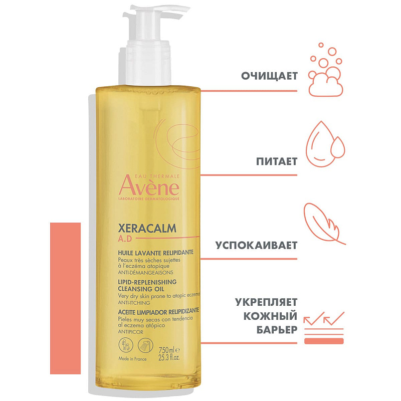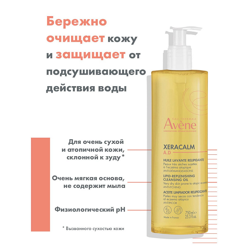 Очищающее масло для очень сухой и атопичной кожи лица и тела XeraCalm A.D., 750 мл