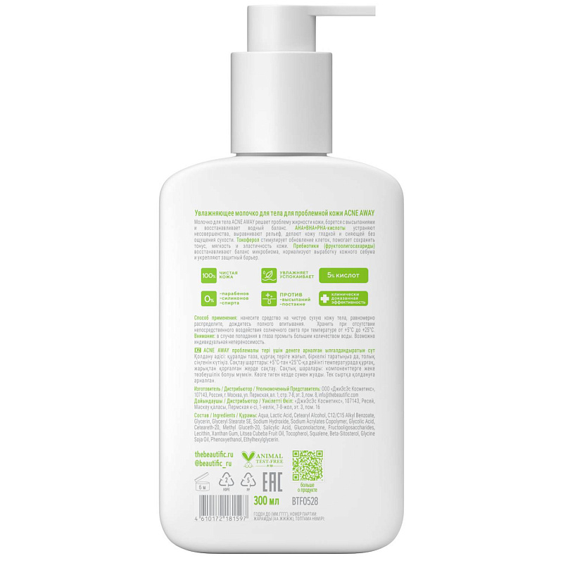 Увлажняющее молочко для тела Acne Away для проблемной кожи, 300 мл