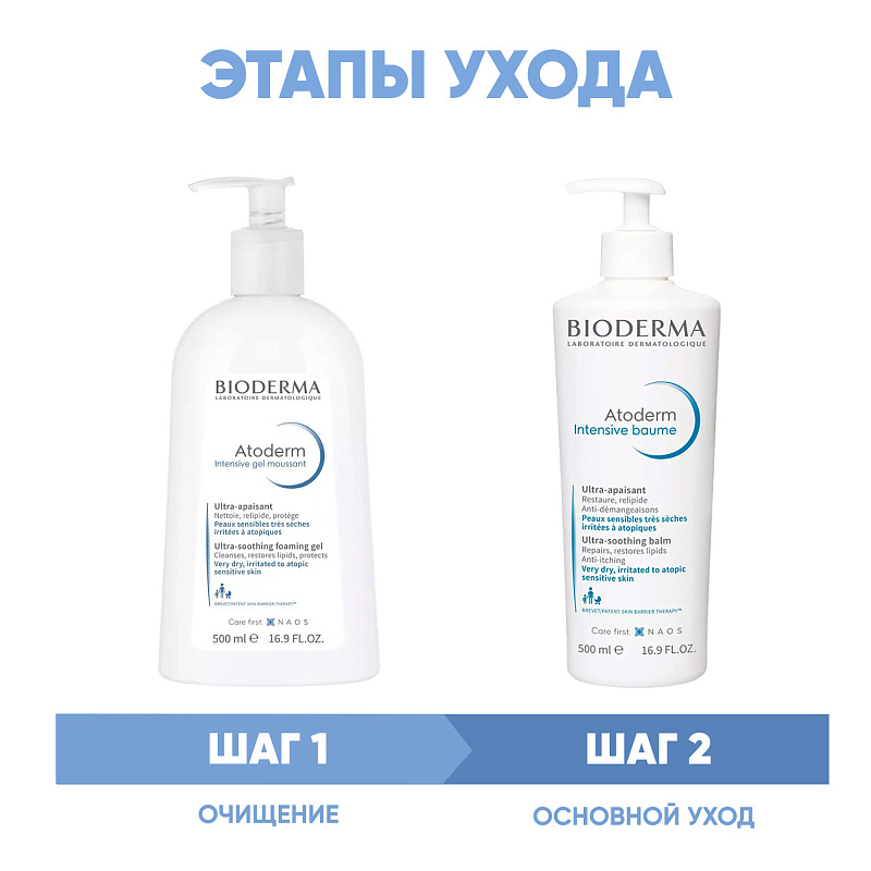 ПРОГРАММА КОМПЛЕКСНОГО УХОДА Bioderma Atoderm для ухода за атопичной, сухой, очень сухой и чувствительной кожей лица и тела. Комплексный уход - это дополняющие друг друга средства, совместное использование которых будет максимально эффективным. Первым шагом такой программы всегда является очищение. Вторым - основной уход, а третьим - дополнительный уход.