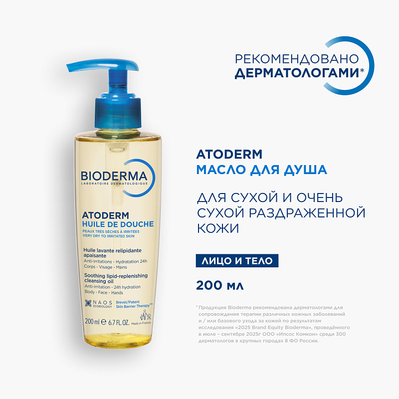 Увлажняющее масло для душа для всей семьи Atoderm, 200 мл