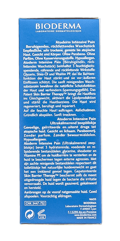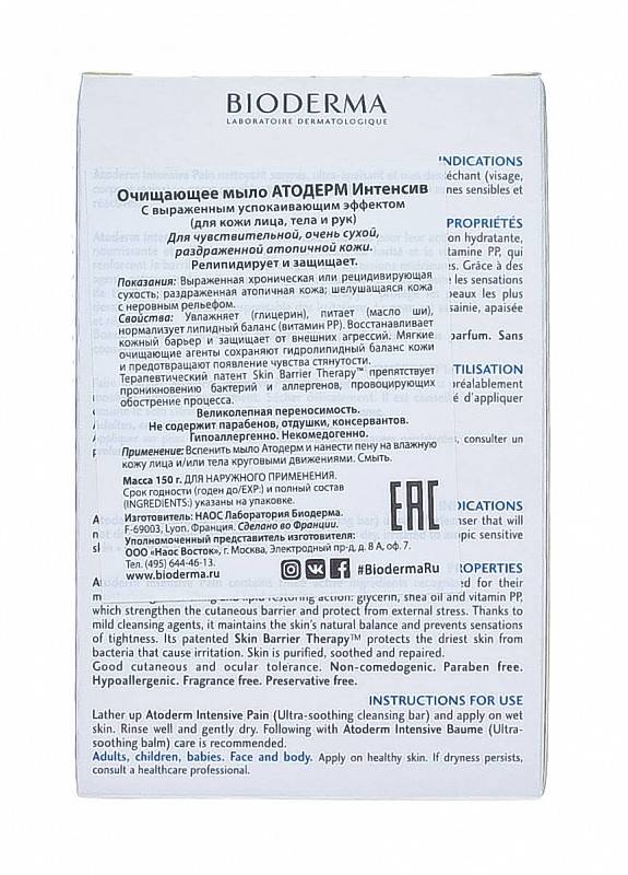 Мыло Bioderma Atoderm Intensive увлажняет, питает и восстанавливает липидный баланс поврежденной кожи. Не содержит отдушки и ингредиентов, вызывающих аллергические реакции. В основе — мягкая очищающая база, что позволяет избежать ощущения стянутости и чрезмерной сухости. Рекомендовано дерматологами.