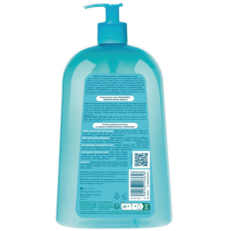 Очищающий гель для душа для детей ABC Derm 0+, 1000 мл