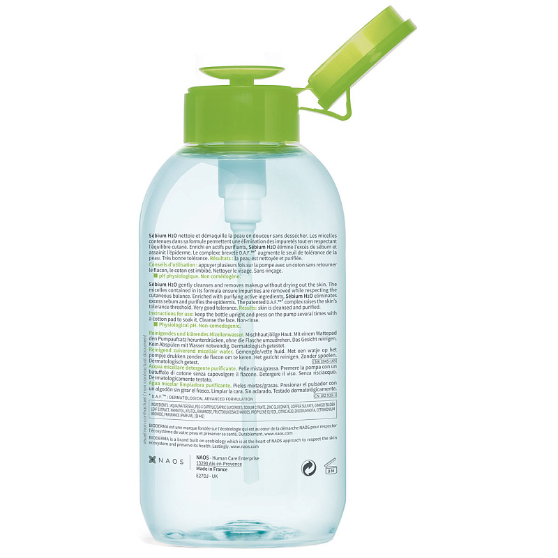 Мицеллярная вода для жирной и проблемной кожи Sebium, флакон с помпой, 500 мл