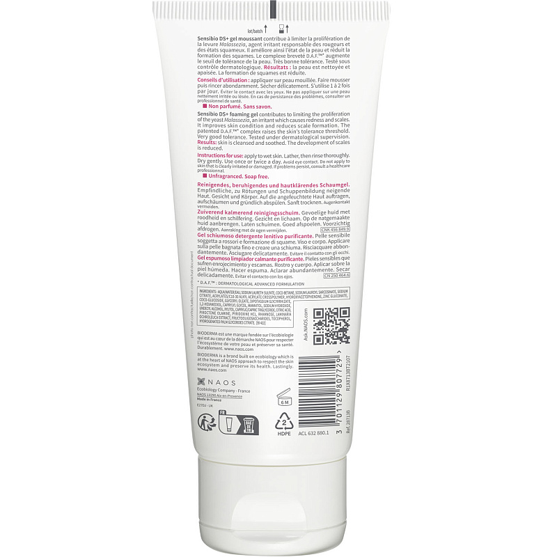 Очищающий гель для кожи с покраснениями и шелушениями DS+, 200 мл