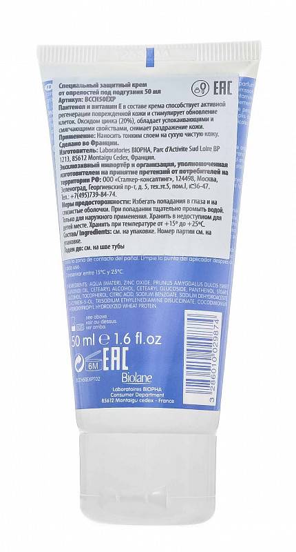 Специальный защитный крем под подгузник серии «Биолан» специально разработан для того, чтобы, благодаря своей инновационной, прекрасно переносимой формуле, заживлять и значительно уменьшать раздражение и покраснение на ягодицах у грудных детей. Сбалансированное сочетание пантенола и витамина Е помогает активно восстанавливать ослабленные клетки эпидермиса, способствуя их обновлению.