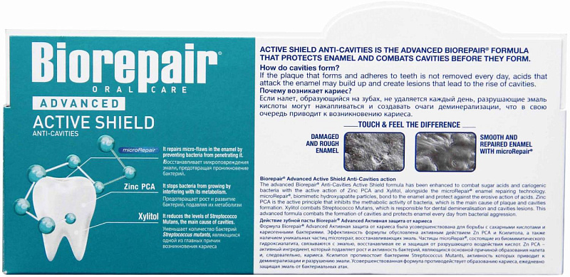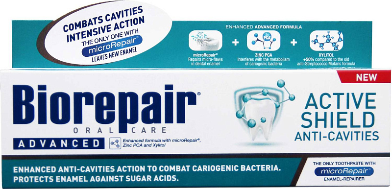Формула Biorepair®Scudo Attivo специально разработана для борьбы с кислотами сахаров и кариесогенными бактериями.