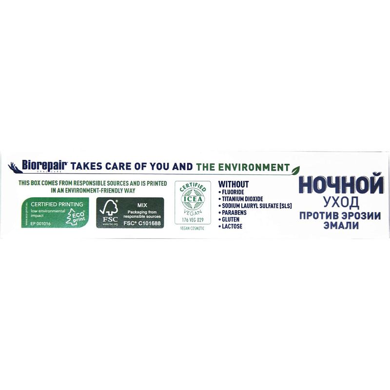 Особый ароматизатор, входящий в состав пасты стимулирует ночное слюноотделение, способствуя самоочищению и увлажнению полости рта.
