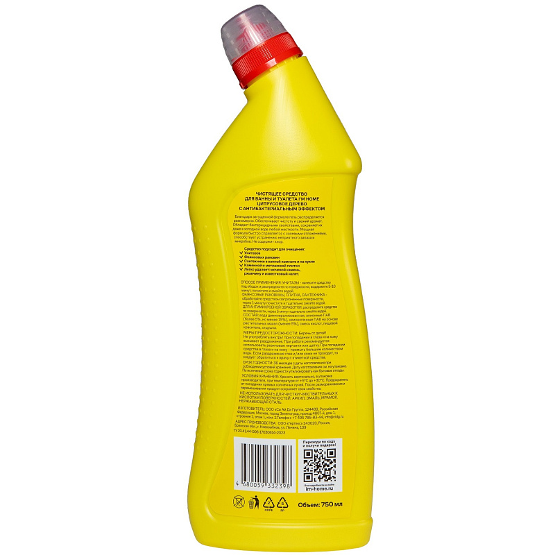 Чистящее средство с антибактериальным эффектом для ванны и туалета «Цитрусовое дерево», 750 мл