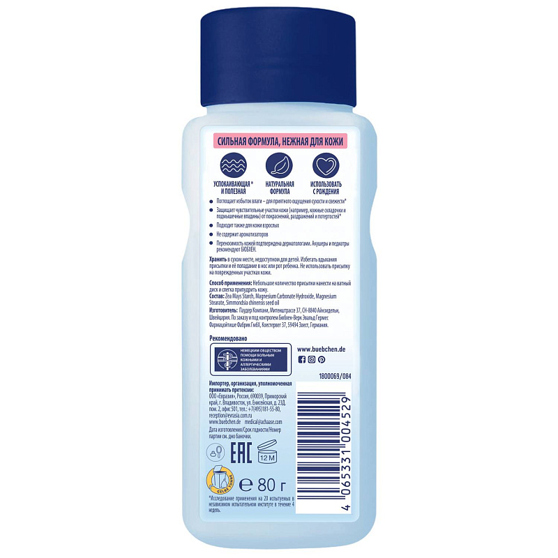 Детская присыпка для чувствительной кожи, 80 гр