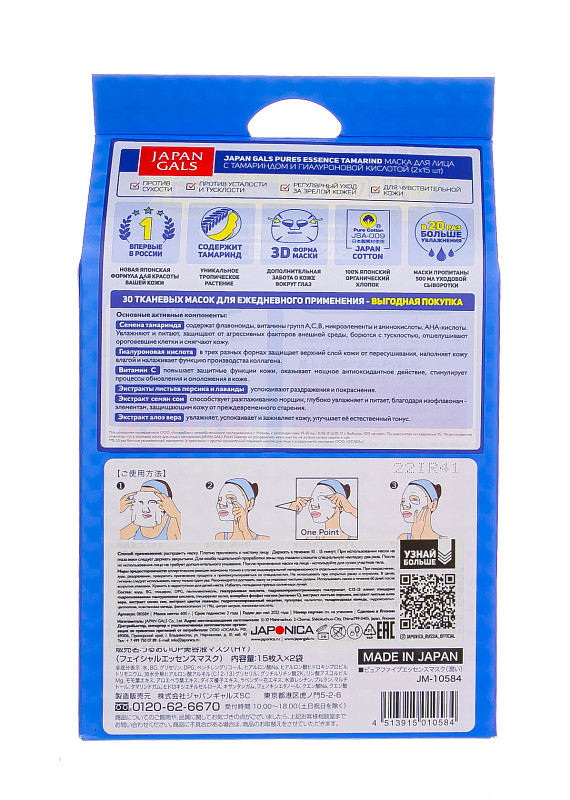 Меры предосторожности: аллергические реакции возможны только в случае индивидуальной непереносимости отдельных компонентов. При покраснении, зуде, раздражении, прекратить применение продукта и проконсультироваться со специалистом. Не использовать при открытых ранах и опухолях. В целях гигиены следует использовать маску только один раз. Рекомендуется доставать маску из упаковки чистыми руками.