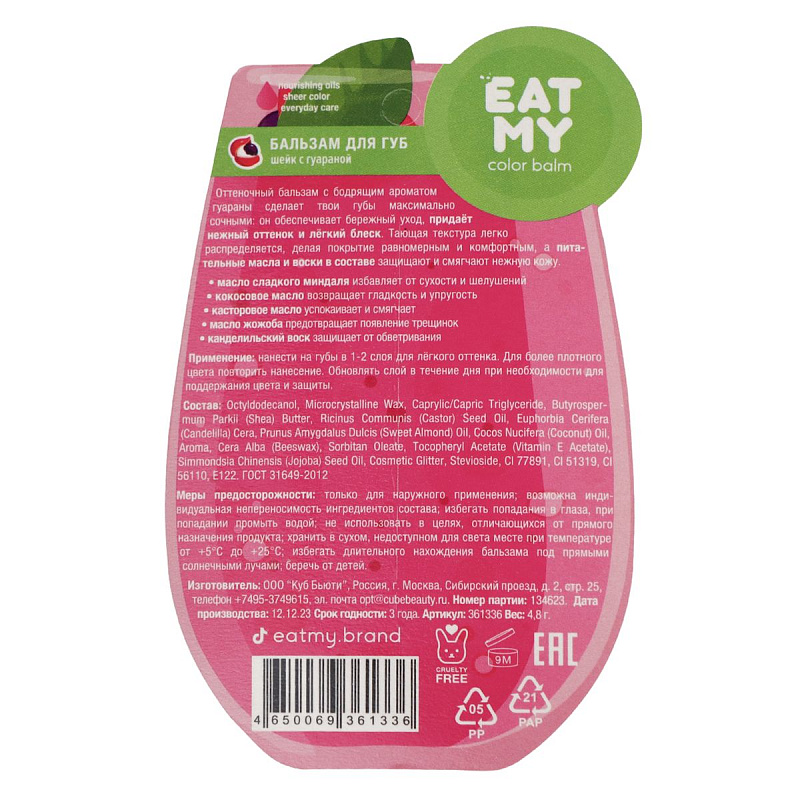 Оттеночный бальзам для губ "Шейк с гуараной", 4,8 гр