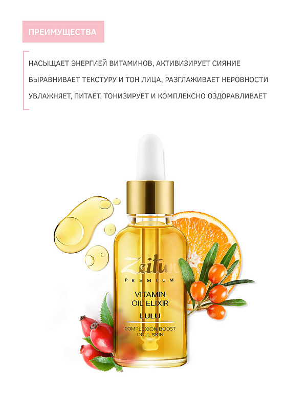 Масляный витаминный эликсир для сияния тусклой кожи лица Lulu, 30 мл