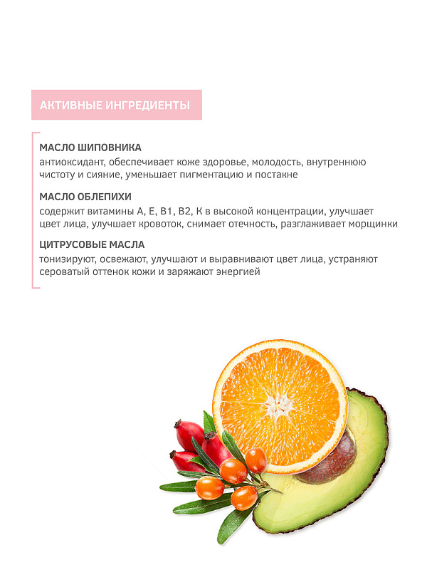 Насыщает энергией тусклую кожу лица, возвращает ей здоровы...