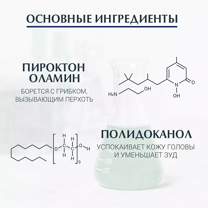 • уменьшает видимую перхоть и контролирует ее появление;